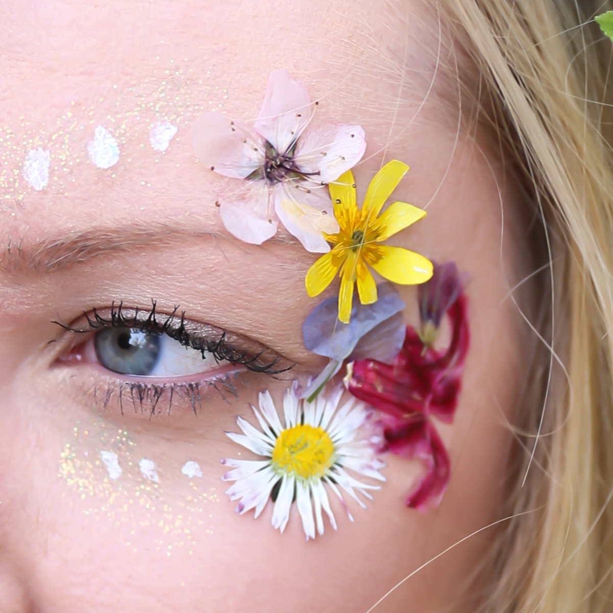 Our biodegradable Face Florals are perfect for eco-conscious festival and event goers. Made from real flowers. Yes, we said that correctly, real flowers! Face Florals are grown, picked and pressed from our very own garden.